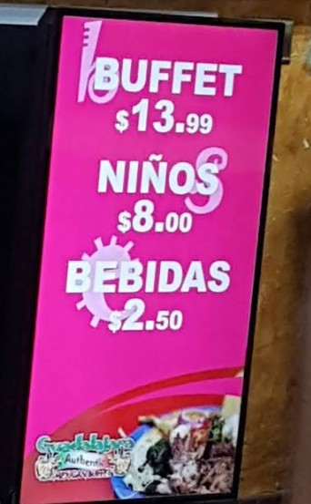 This is the first Mexican food buffet I have tried and it is solid. People were nice and the food was tasty. I really liked the lamb dish which I took off the bone and made tacos topped with cilantro and onions. There are a few soup options but it was such a hot day I didn’t try any. I’ll be back in the winter to get a couple bowls of soup. The ceviche on a tostada with queso fresco is a must try. Also, the tres leches cake is on point. I ate 4 pieces lol